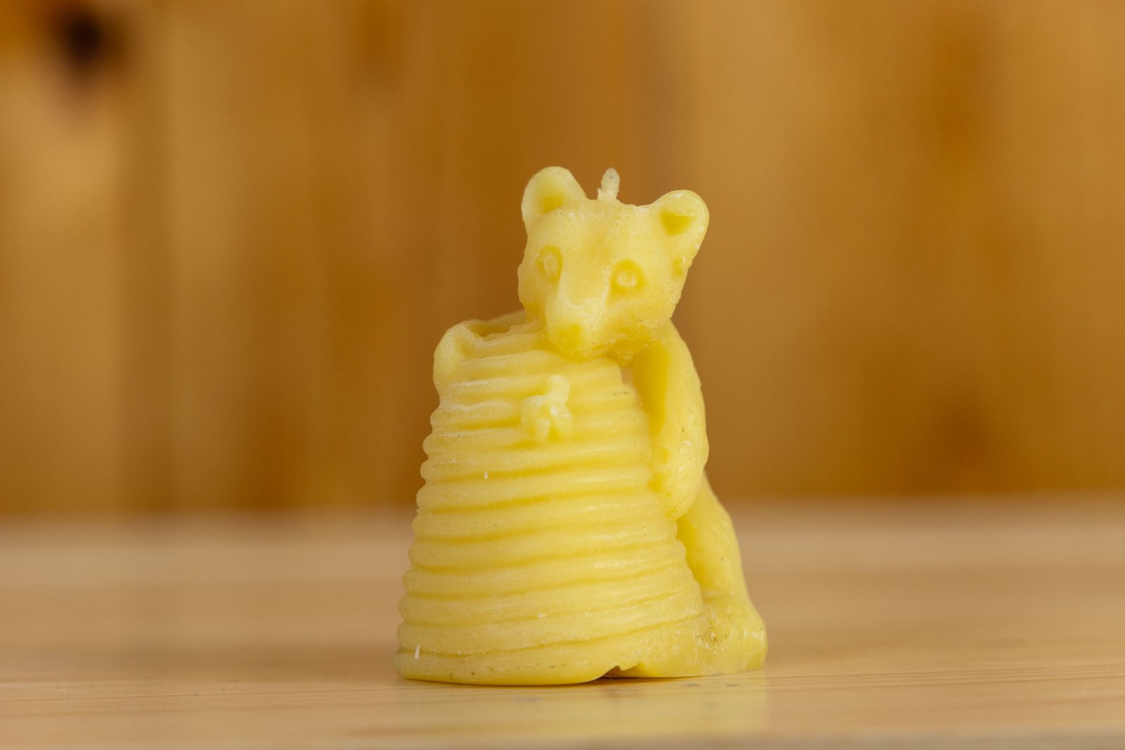 100% Pure Beeswax Candle, Bears love Honey and this one is trying to rob the hive! A favorite of those who love the original Winnie-the-Pooh. Natural Beeswax Color