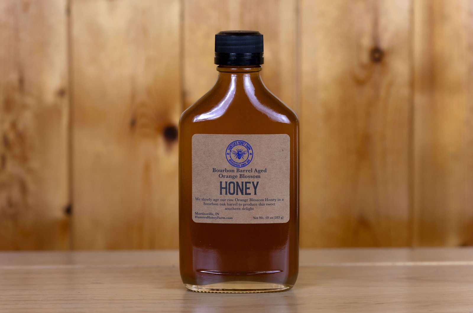 We slowly age our raw orange blossom honey in a fresh bourbon barrel.