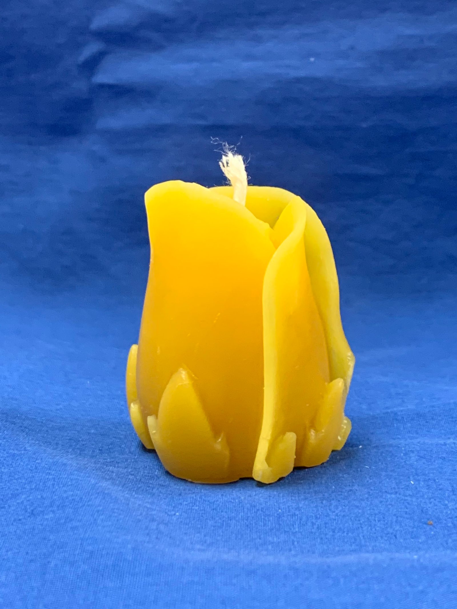 This small rose shaped votive is made of 100 percent beeswax with a cotton wick.