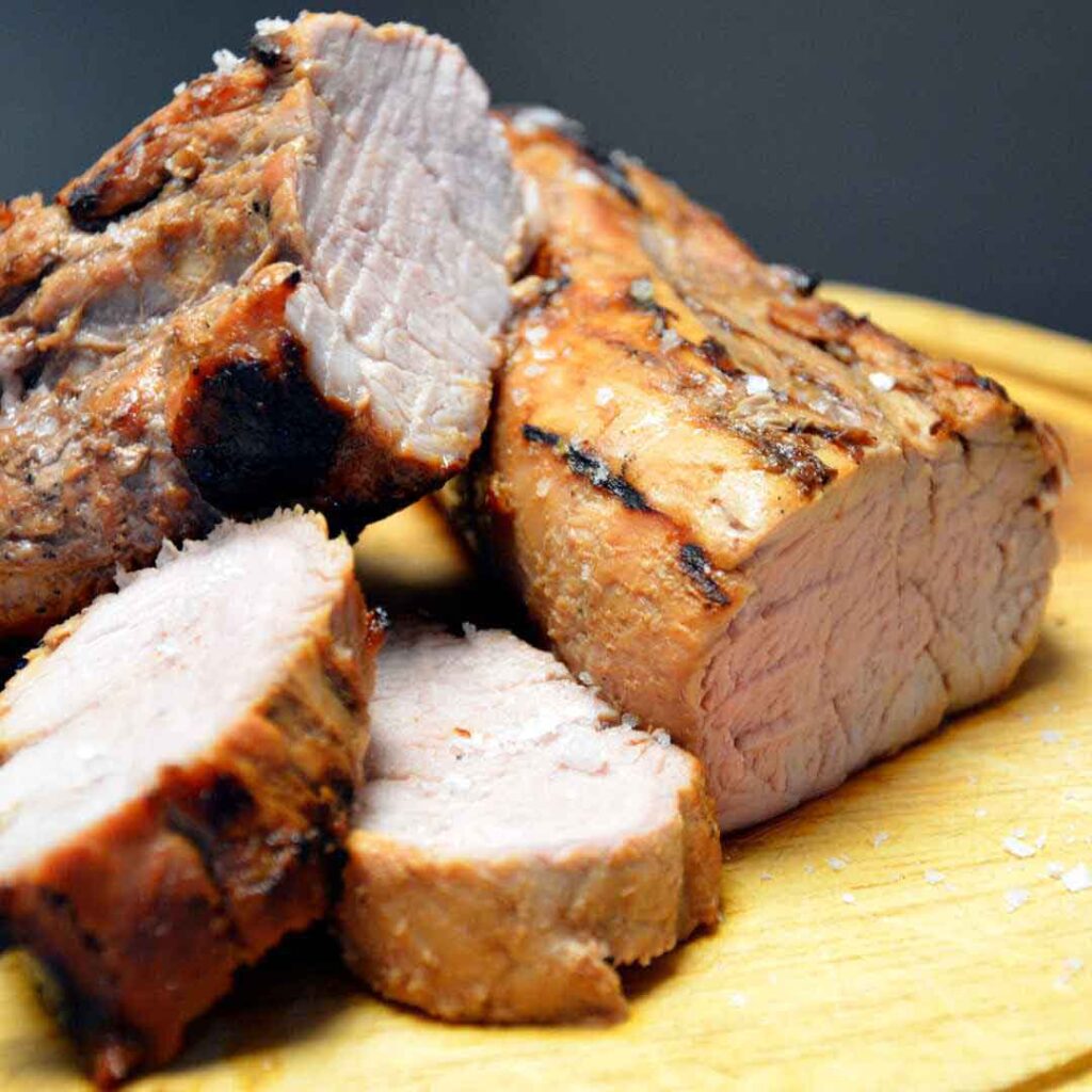 Pork tenderloin marinated in honey and herbs and grilled while being basted with the marinade.